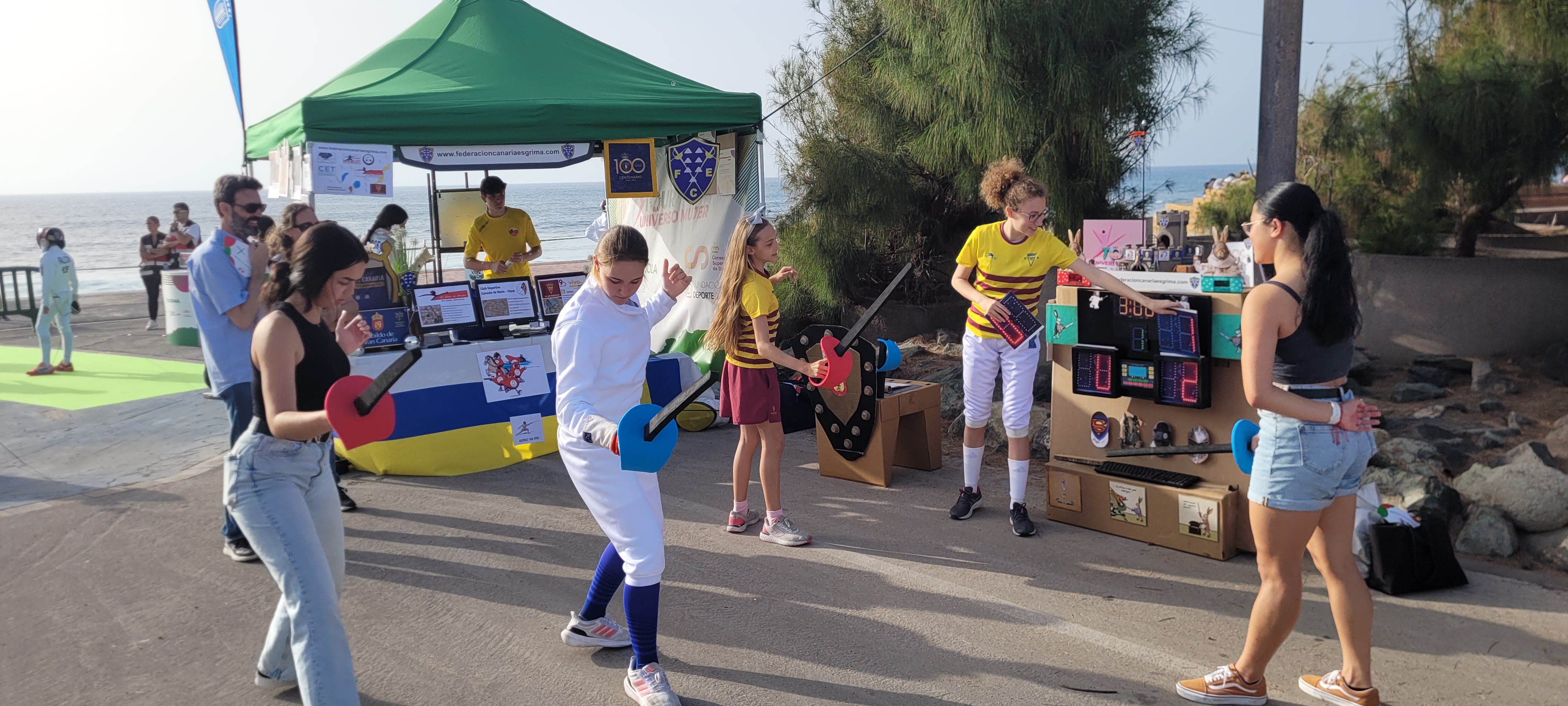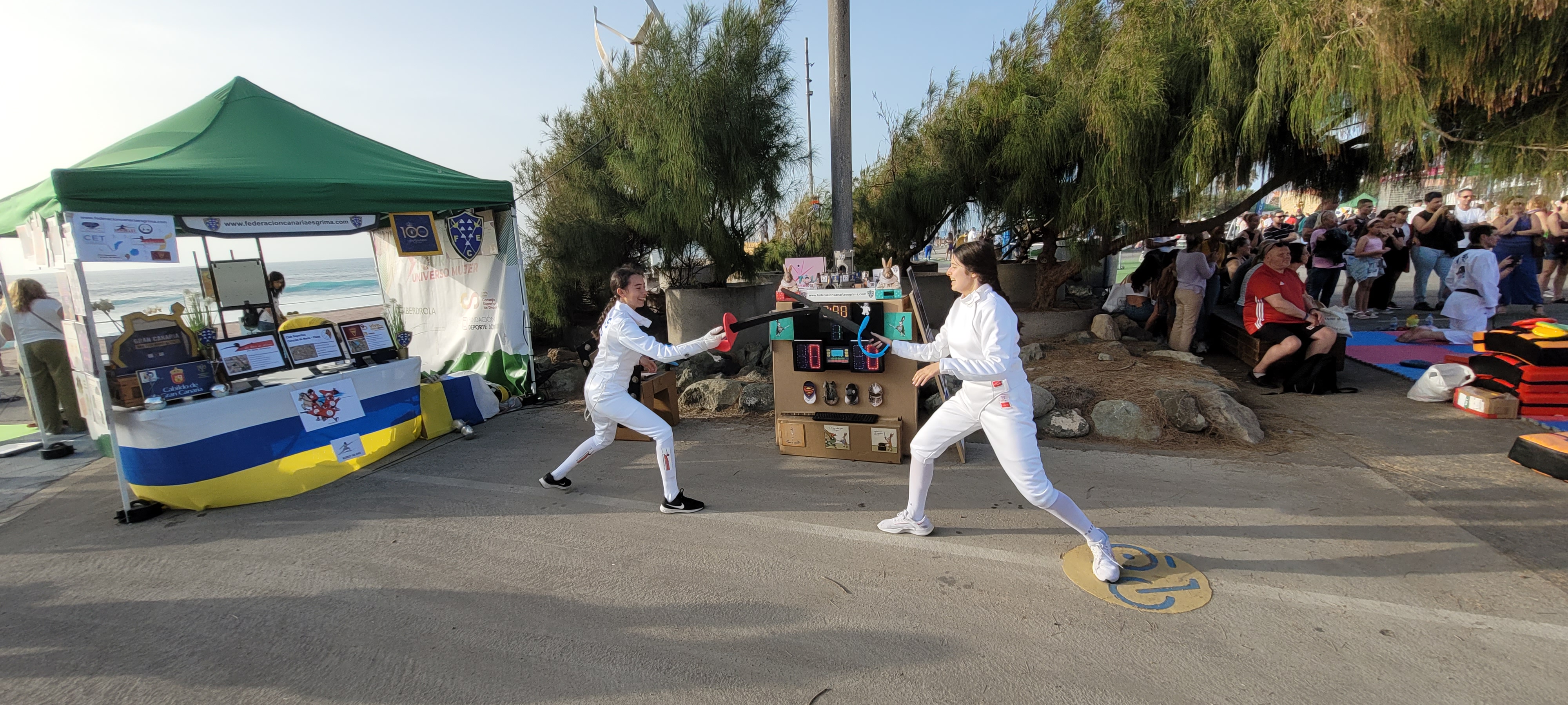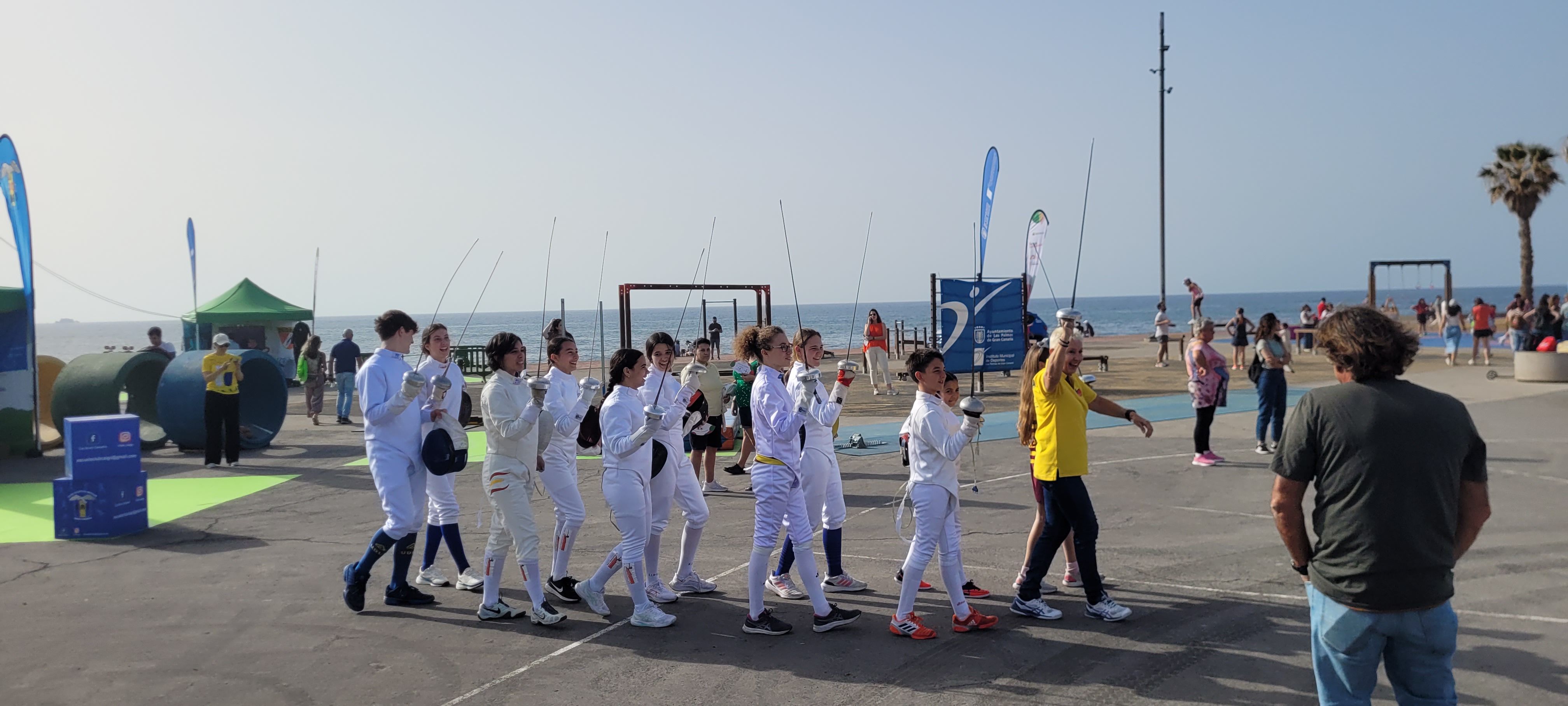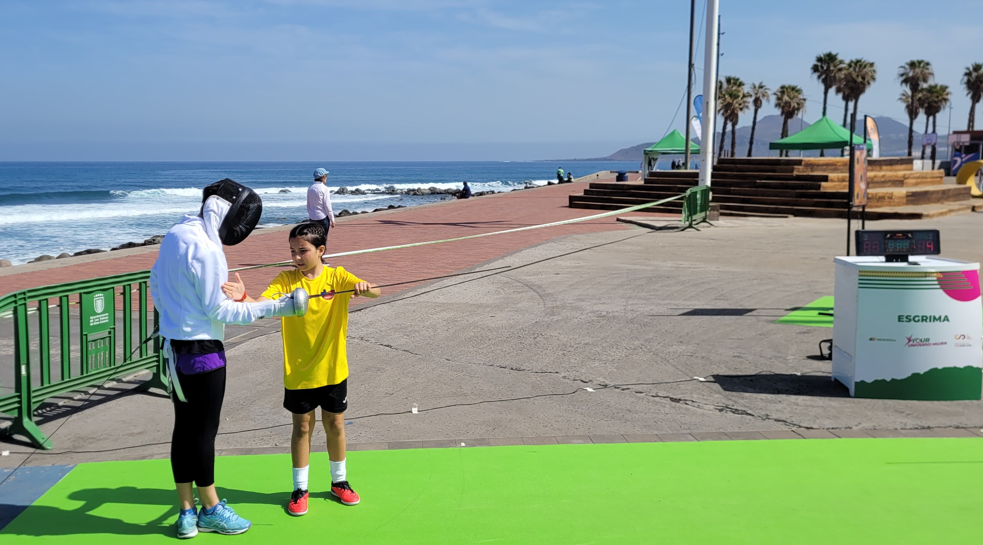 En este enclave incomparable, con el mar de fondo y el Auditorio Alfredo Kraus como referente emblemático de la zona, se desarrollaron dos jornadas de lo más divertidas y animadas que se puedan imaginar, con el deporte en general como hilo conductor y para nosotros con la ESGRIMA como eje central.