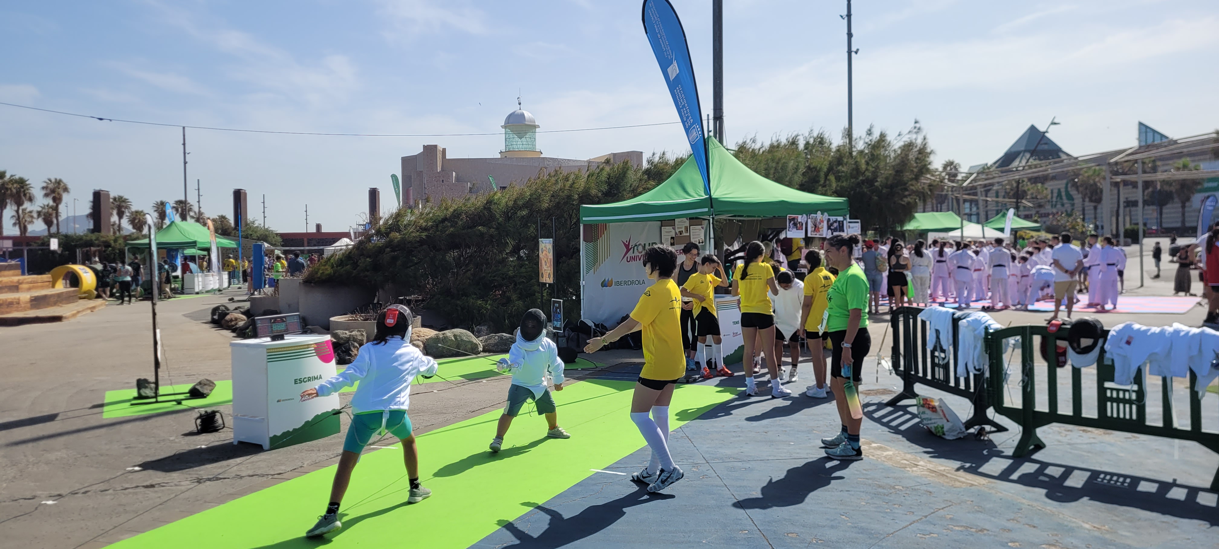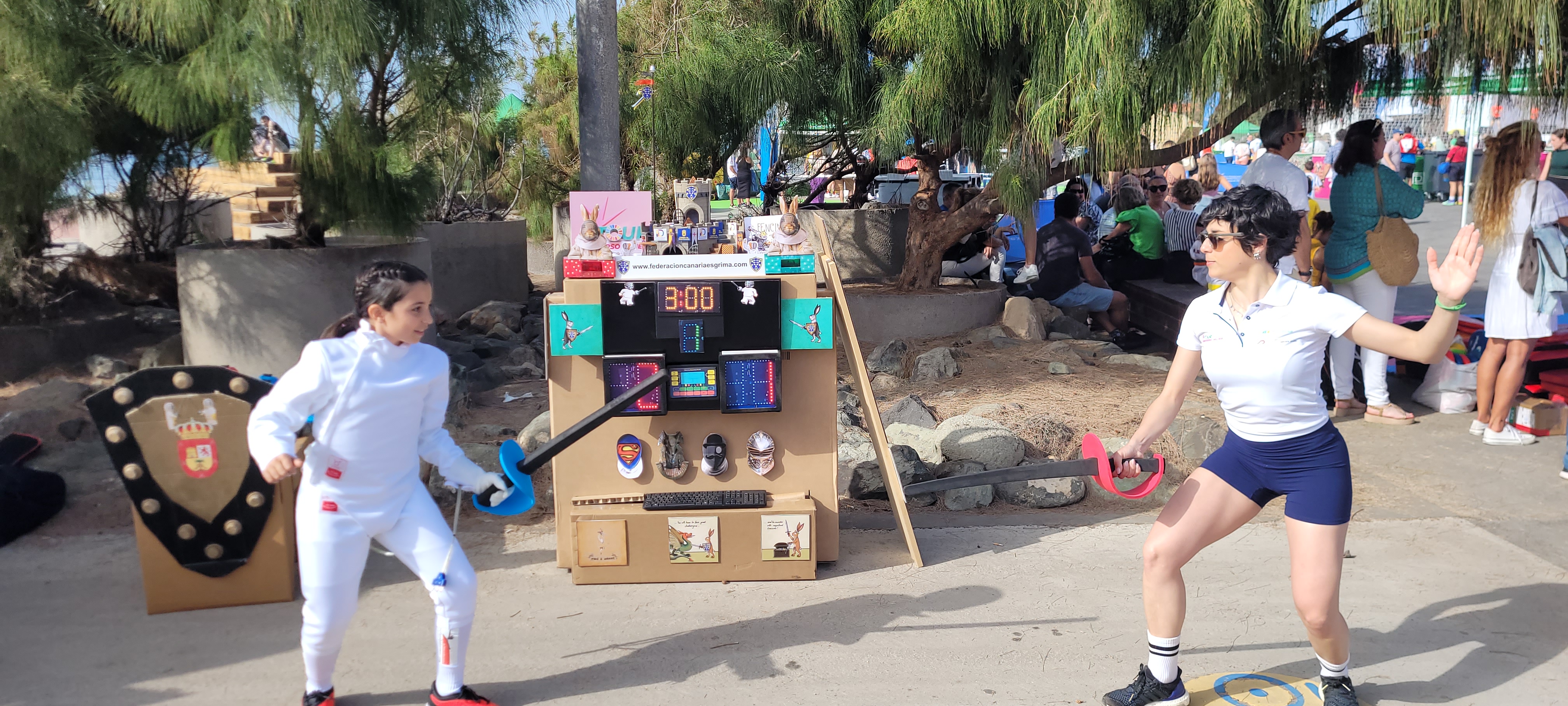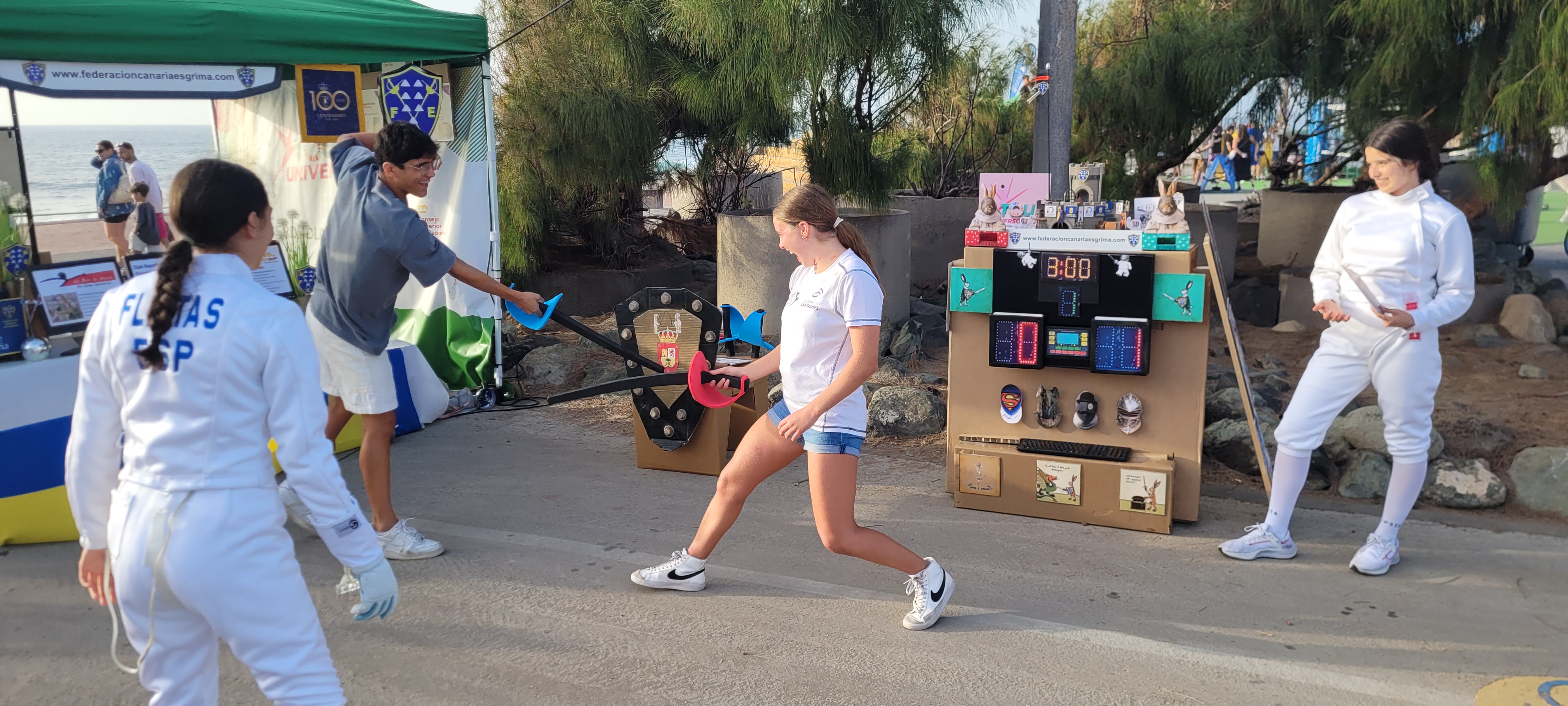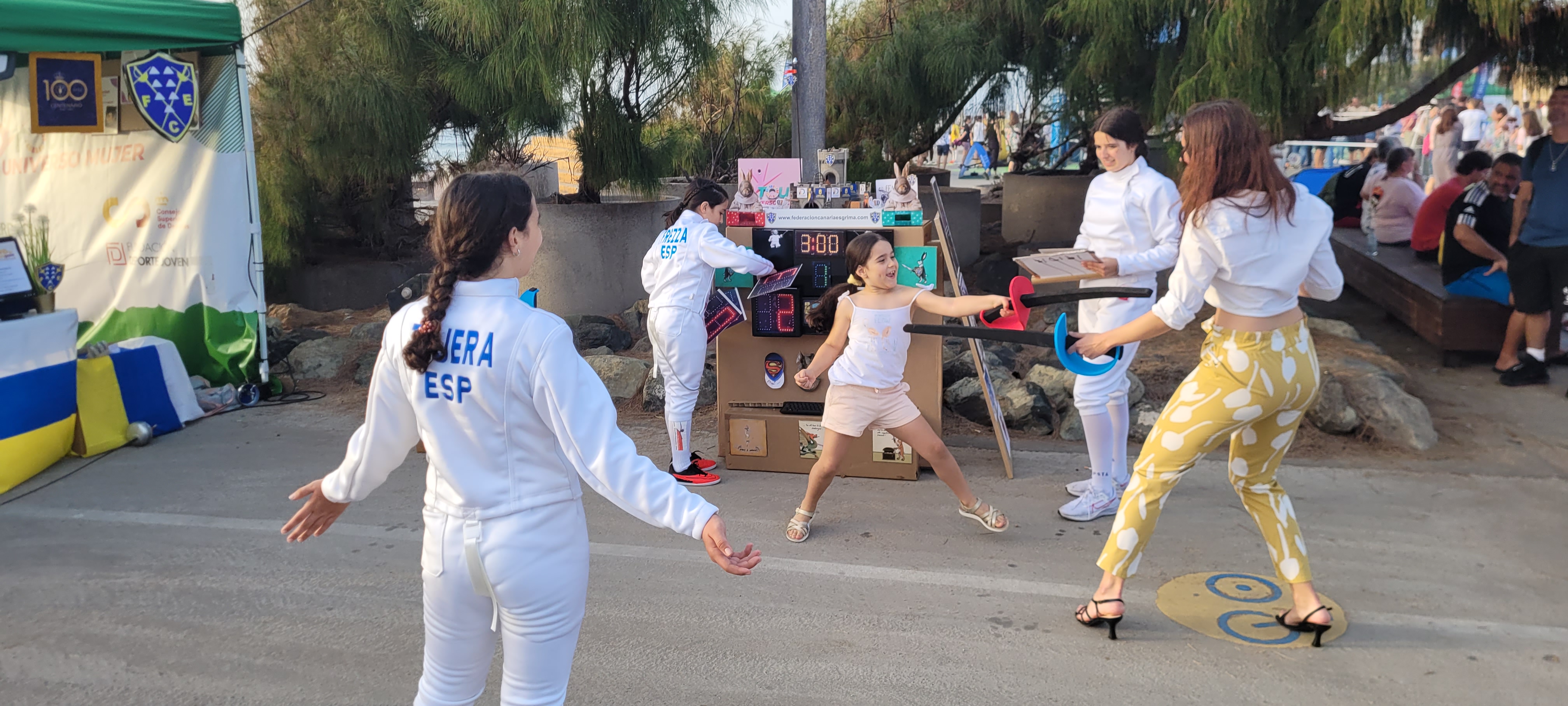 En este enclave incomparable, con el mar de fondo y el Auditorio Alfredo Kraus como referente emblemático de la zona, se desarrollaron dos jornadas de lo más divertidas y animadas que se puedan imaginar, con el deporte en general como hilo conductor y para nosotros con la ESGRIMA como eje central.