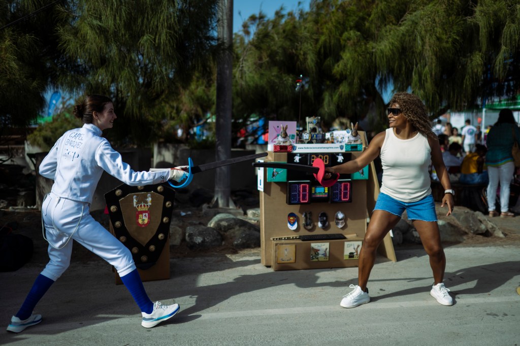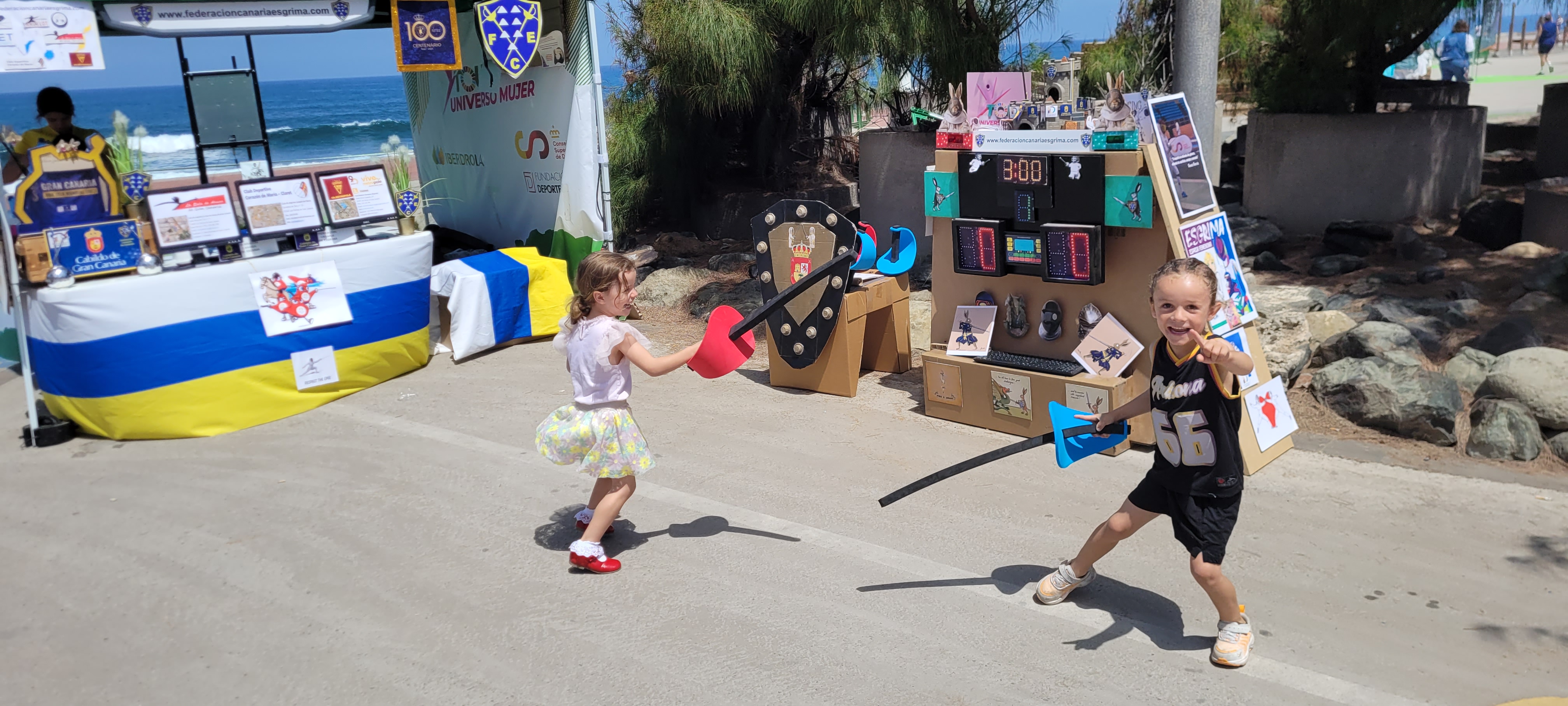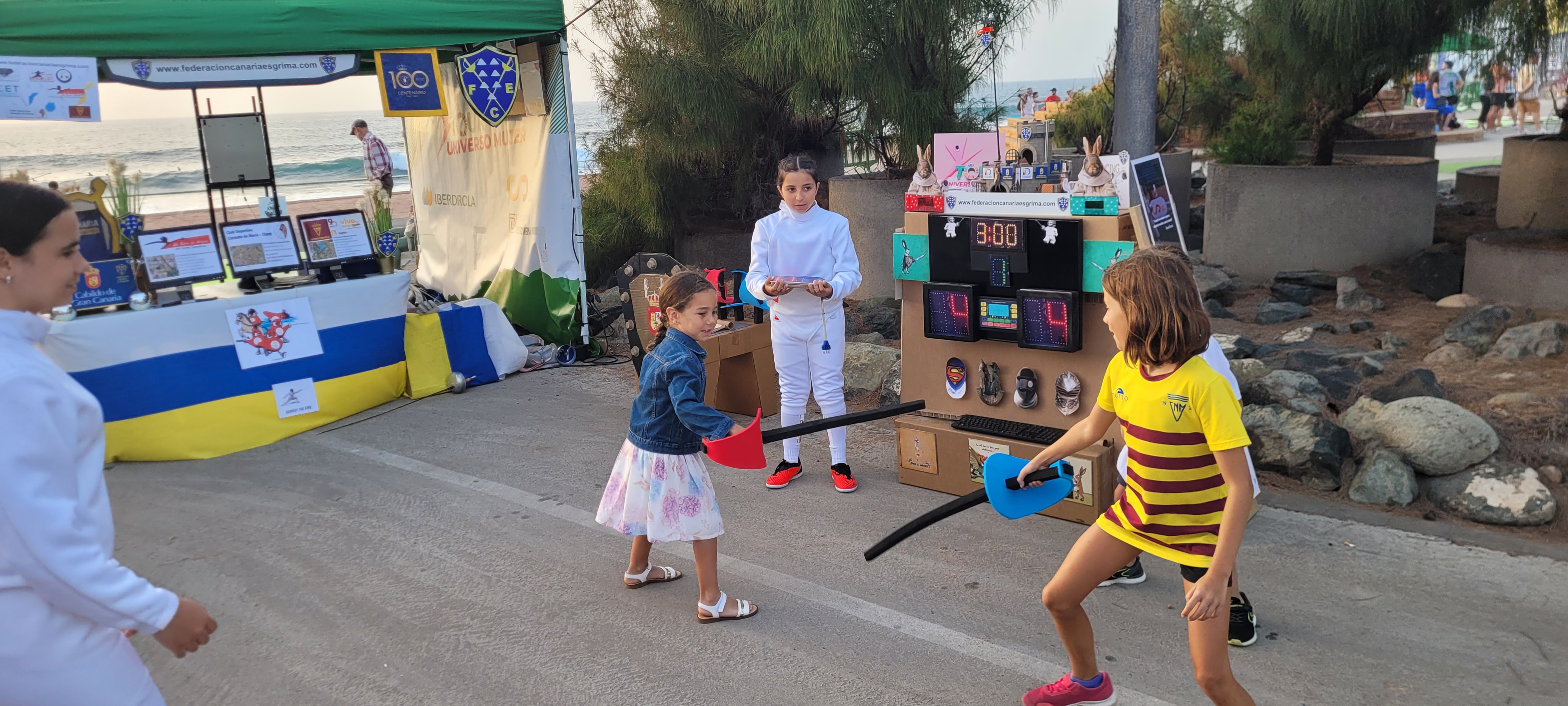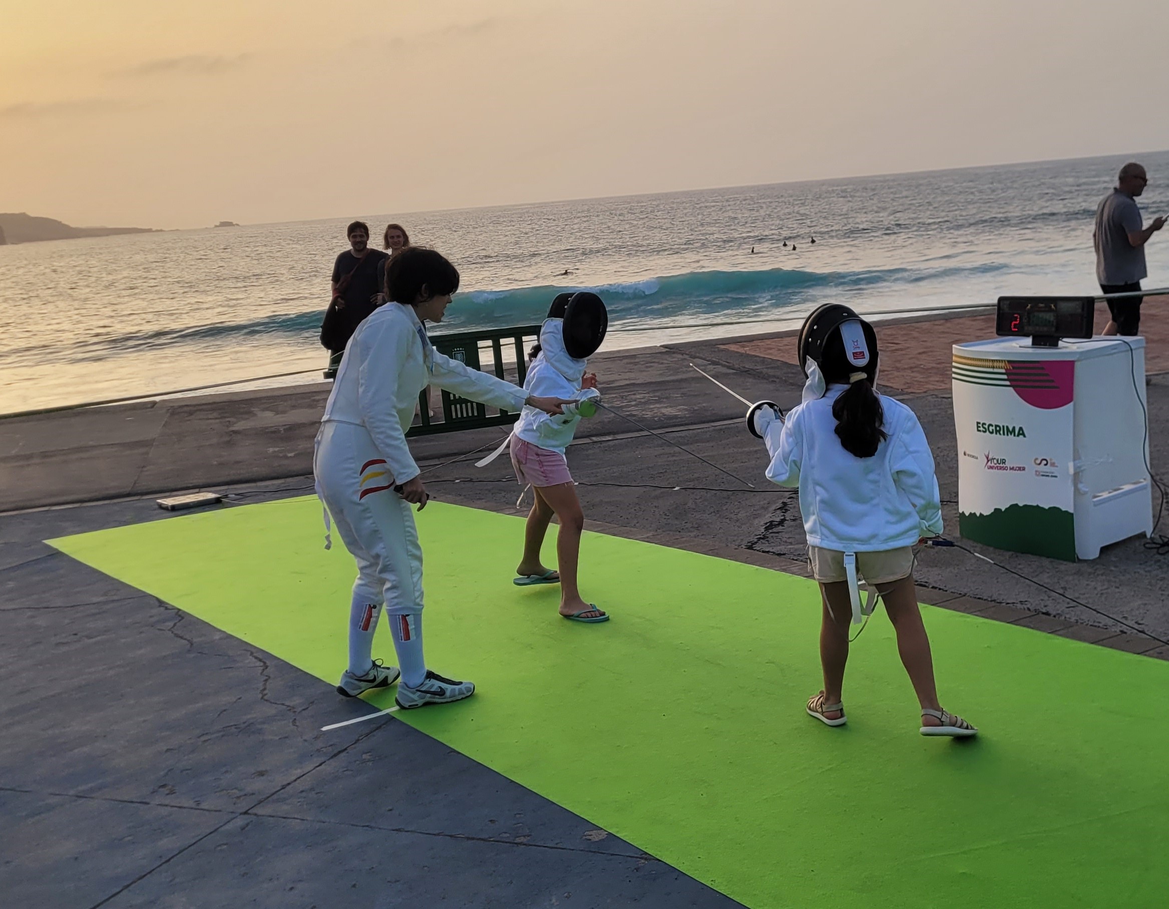 En este enclave incomparable, con el mar de fondo y el Auditorio Alfredo Kraus como referente emblemático de la zona, se desarrollaron dos jornadas de lo más divertidas y animadas que se puedan imaginar, con el deporte en general como hilo conductor y para nosotros con la ESGRIMA como eje central.