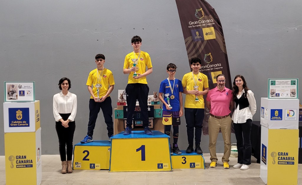 Ganadores categoría BENJAMÍN MASCULINA, 4 OROS 🥇Beltrán López (CNM), 🥇David Talavera (CODEMA), 🥇Hugo Rivero (CODEMA),🥇 Darío Oliva (CODEMA) y 4 PLATAS 🥈Mateo Santana (CODEMA),🥈Rocco Alegría (CSA), 🥈Javier Guerra (CNM) y 🥈Matías Fontecha (CSA).