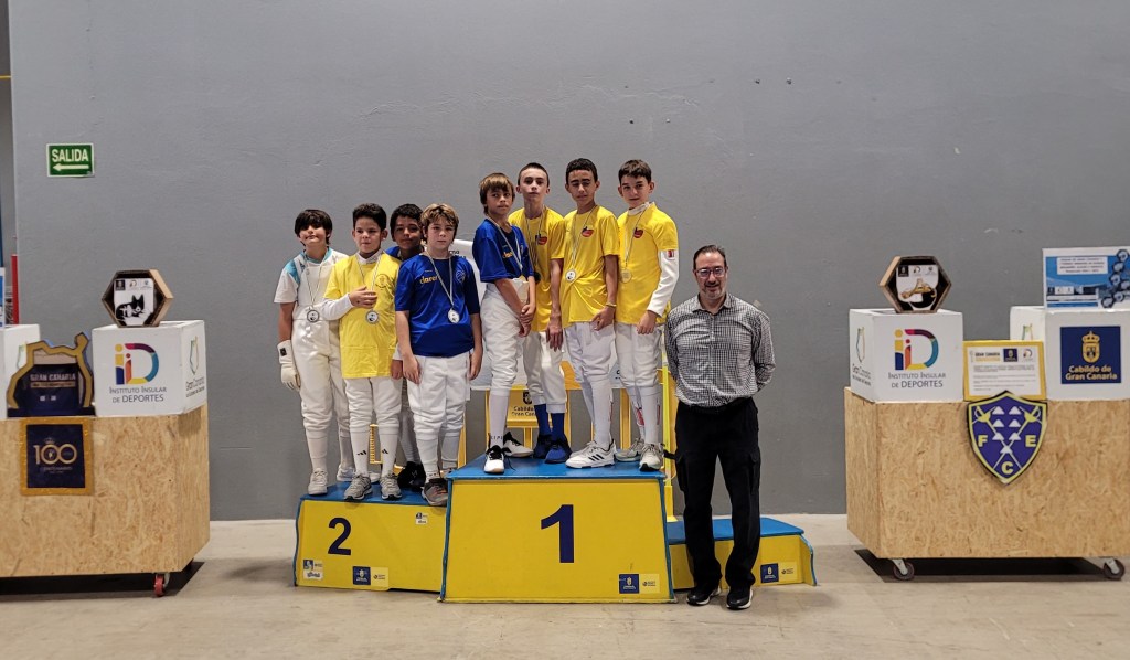 Ganadores categoría ALEVÍN MASCULINA, 4 OROS 🥇Manuel Falcón (CSA), 🥇 Tomás Neyra (CSA), 🥇Luis García (CSA),🥇 Darío Oliva (CODEMA) y 4 PLATAS 🥈Hugo Rivero (CODEMA),🥈Mateo Santana (CODEMA), 🥈Javier Guerra (CNM) y 🥈Kylian González (CEPC).